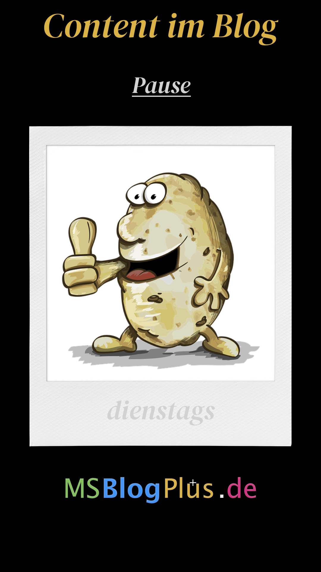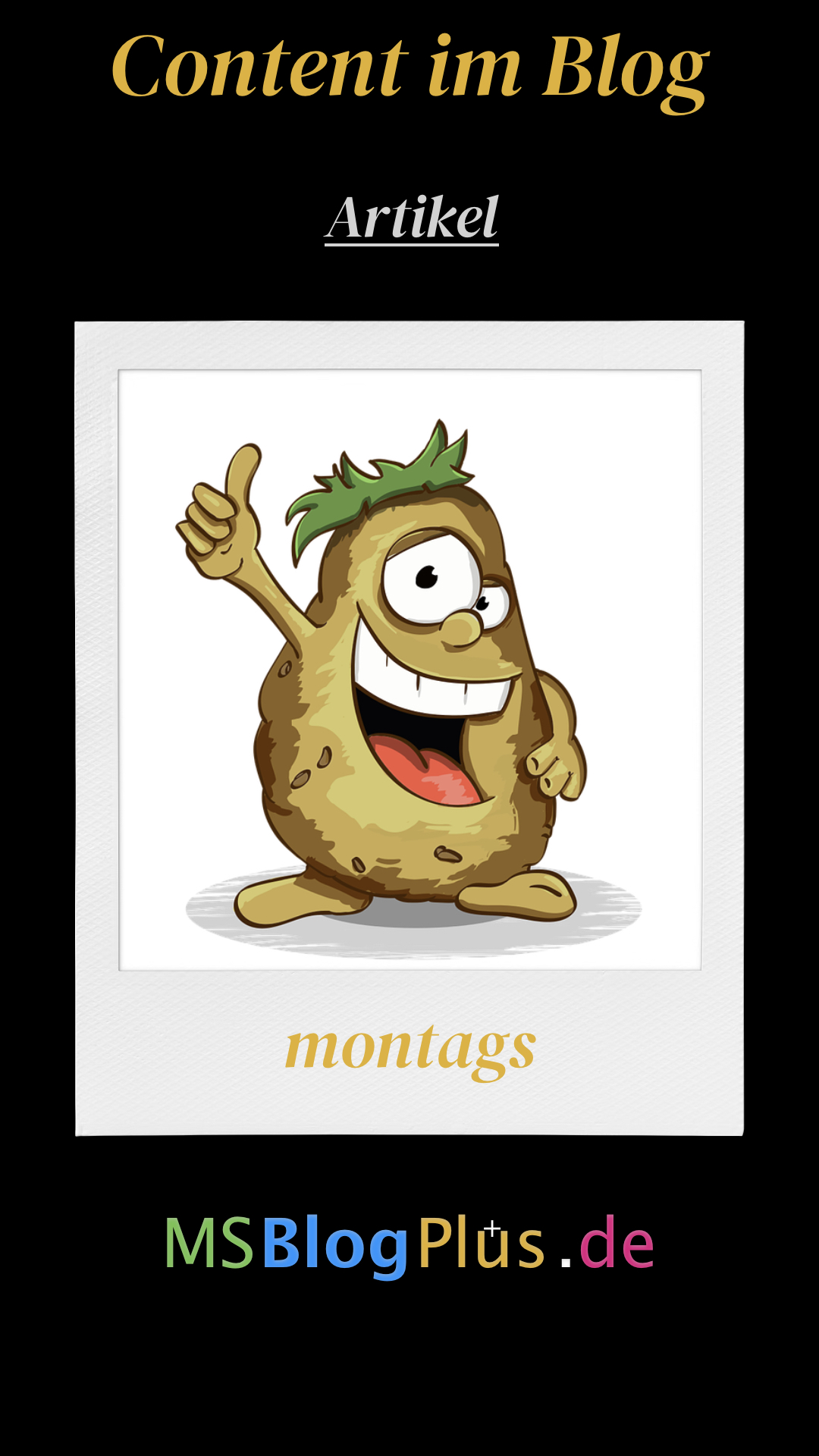 Als Freund der Kartoffel zeigen sich meine nicht ganz ernst gemeinten Grafiken, die auf den Content der Woche auf Social-Media aufmerksam machen. Mit Freude und Humor lässt sich der Alltag und das Leben mit unterschiedlichen Erkrankungen leichter gestalten. Ich bleibe ein Freund von unterschiedlichen Perspektiven, die sich mit positivem beschäftigen, scheue aber auch die Auseinandersetzung nicht, wenn es unvermeidbar ist. Hier hilft der Blick in die wöchentliche Wochenendbeilage, kurz und knapp und auf den Punkt, ohne große Worte. Im Doppelpack kommen die beiden Artikel zur Kategorie: »Leben mit MS« daher. »Wie offen bist du mit der Diagnose MS umgegangen?« und »Oh MS, du trickreiche Gefährtin!« in dieser Woche daher. Lesestoff für alle Interessierten, viel Spaß!
