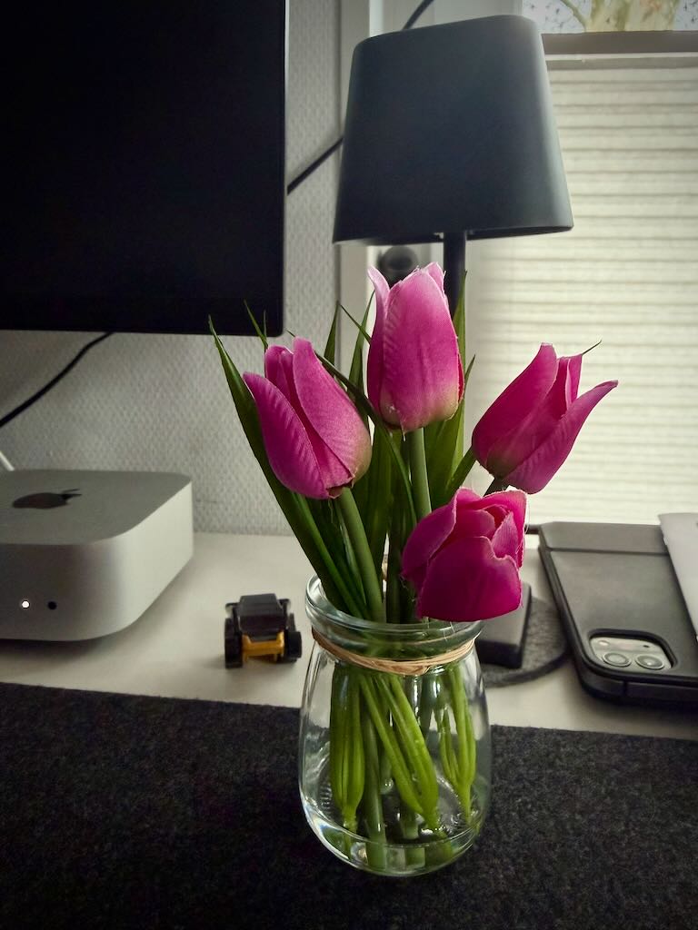 Top 4: Der kleine Tulpenstrauß meiner Frau hat mir eine große Freude bereitet. Da wir beide Tulpen lieben, bringt das Mitbringsel etwas Farbe auf meinen Schreibtisch und weckt Vorfreude auf den Frühling.
